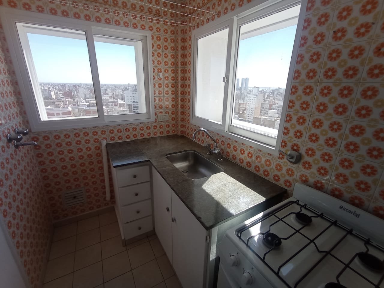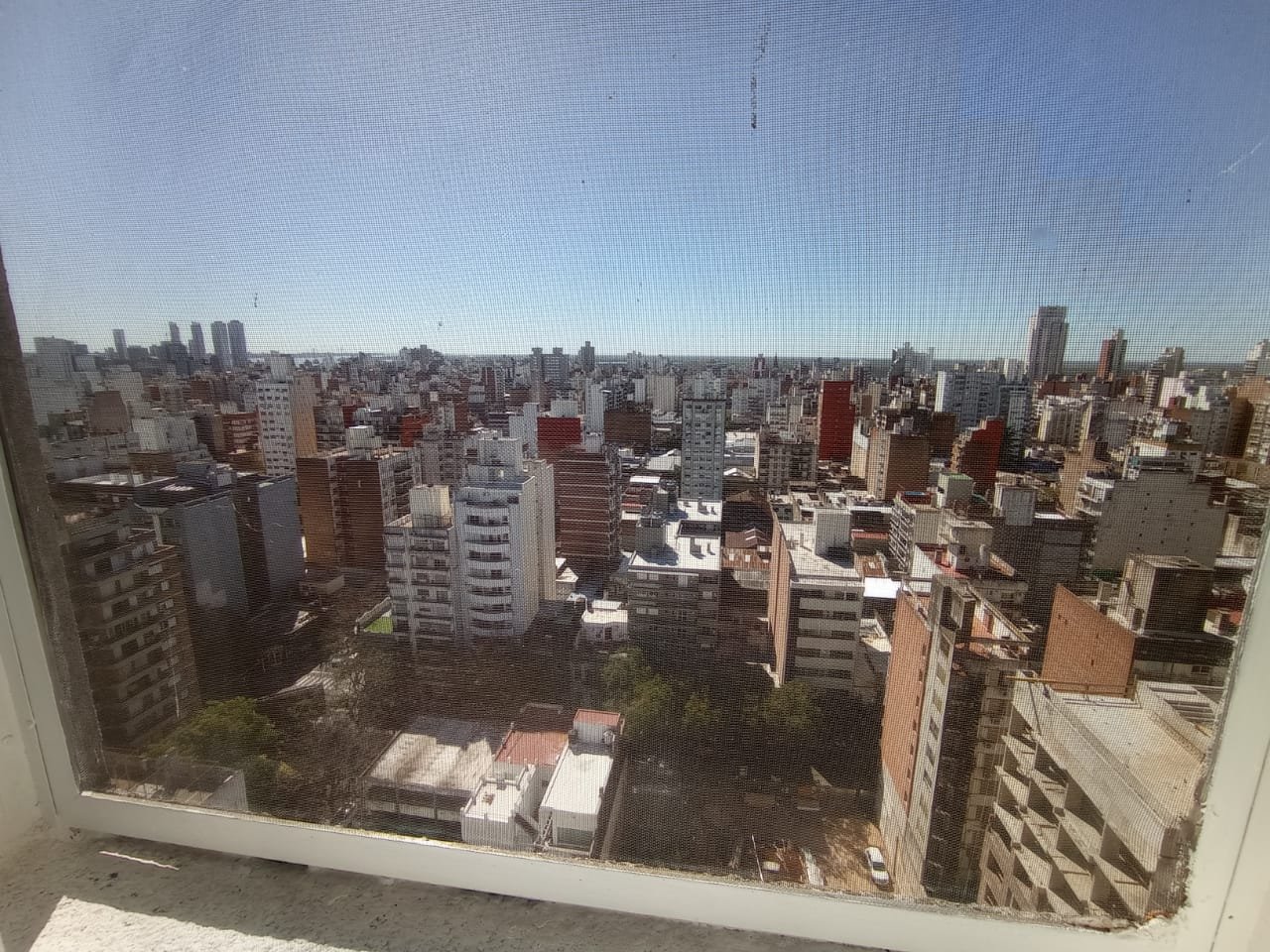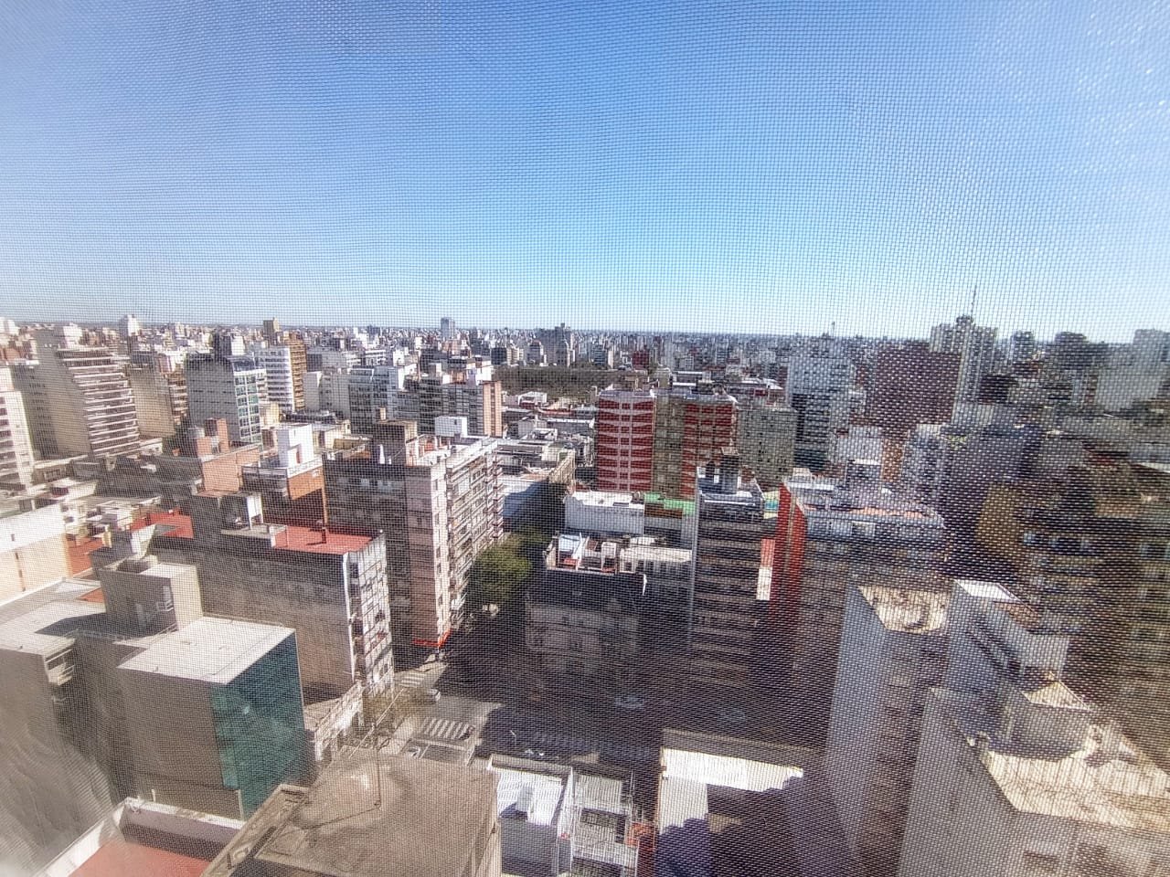 Alquiler Dpto. de 1 dormitorio ubicado en calle Santa Fe 1644, Piso 19, con espectacular vista a la ciudad desde todos sus ambientes. Living comedor con aire acondicionado y persiana de enrollar, cocina independiente con termotanque eléctrico a estrenar, cocina a gas a estrenar y espacio técnico para lavaropas, baño completo con ducha, un dormitorio con persiana de enrollar. Placard empotrado fuera del dormitorio. Pisos de cerámica en todo el inmueble, fácil mantenimiento. Muy luminoso. Mosquiteros en todas las ventanas. Ingreso monitoreado. Tres ascensores. Contrato por dos años, con actualizaciones cada 3 meses por índice IPC. Garantías: una propiedad y dos recibos de sueldo.